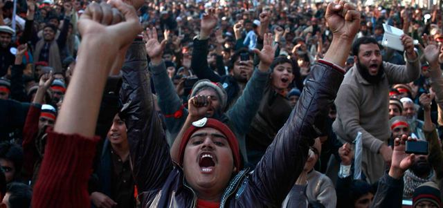 تظاهرة باكستانية ضد الرسوم المسيئة في لاهور أمس. رويترز