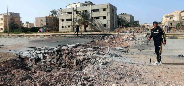آثار القصف واضحة على منطقة في بنغازي حيث شهدت اشتباكات وعمليات قصف. رويترز