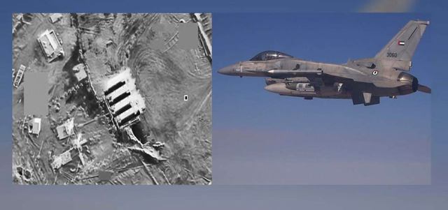 وقصفت الطائرات المقاتلة من سرب «إف 16»، التابعة للقوات الجوية والدفاع الجوي لدولة الإمارات، والمتمركزة في إحدى القواعد الجوية بالأردن، مواقع وتجمعات تنظيم «داعش» الإرهابي، الذي أظهر للعالم بشاعته وانتهاكاته لكل القيم الدينية والإنسانية.