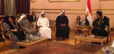الجابر لدى تقديمه العزاء إلى البابا تواضروس. وام
