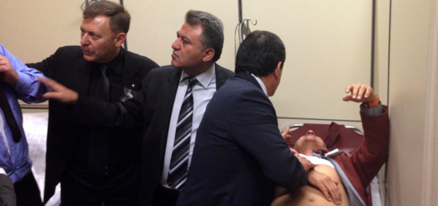 وقالت وكالة دوجان للأنباء، إن خمسة أشخاص أصيبوا أثناء جلسة المناقشة المسائية. وذكرت أن ارتوغرول كوركجو النائب عن الحزب الشعبي الديمقراطي الموالي للأكراد أصيب بجرح في رأسه وظهر في صورة واضعاً ضمادة على رأسه. وأضافت أن أربعة من نواب حزب الشعب الجمهوري أصيبوا ونقل اثنان منهم إلى المستشفى بعدما اشتبكا مع نواب عن حزب العدالة والتنمية الحاكم.