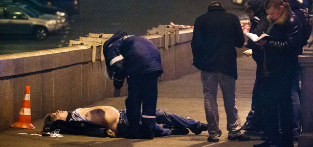 جثة نيمتسوف عقب اغتياله. أ.ف.ب