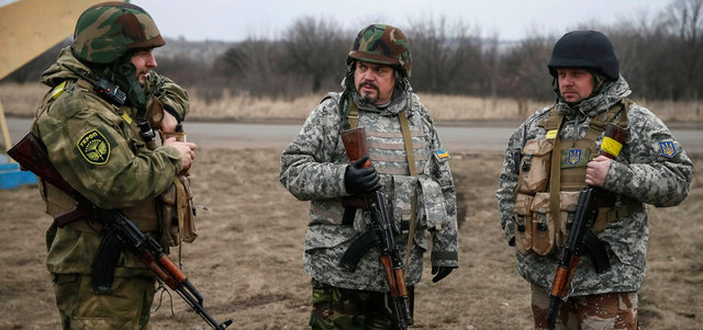 جنود من الجيش الأوكراني في إحدى المناطق شرق أوكرانيا. رويترز