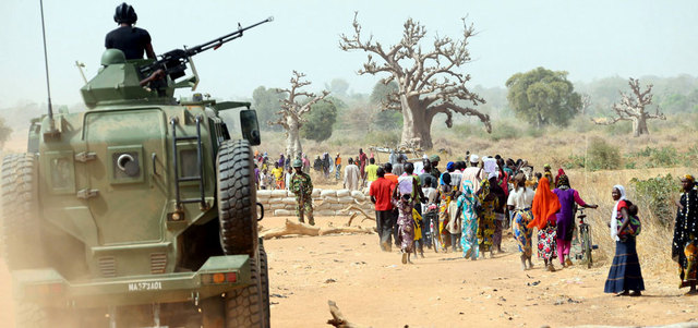 الجيش ينتشر في قرية شبوكو خلال بناء مدرسة بعد خطف 200 طالبة. أ.ف.ب