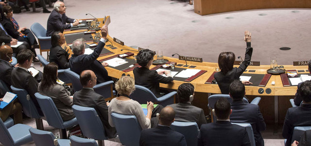 جانب من تصويت مجلس الأمن الأخير ضد مشروع القرار السابق لإنهاء الاحتلال الإسرائيلي لفلسطين. أرشيفية