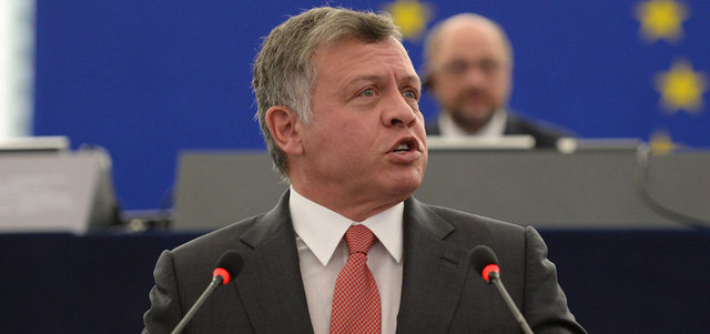 وقال الملك عبدالله في خطاب أمام البرلمان الأوروبي في ستراسبورغ، إن «الفشل (في عملية السلام) يبعث برسالة خطرة، إذ يؤدي إلى تآكل الثقة بالقانون والمجتمع الدولي، ويهدد ركائز السلام العالمي، أي حل الصراعات بالوسائل السياسية والسلمية».