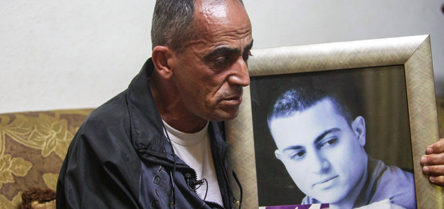 والد محمد يحتضن صورة ابنه الذي أعدمه «داعش». إي.بي.إيه