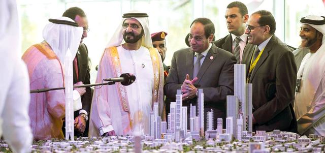 شهد صاحب السمو الشيخ محمد بن راشد آل مكتوم، نائب رئيس الدولة رئيس مجلس الوزراء حاكم دبي، والرئيس المصري عبدالفتاح السيسي التوقيع على اتفاقية مشروع بناء العاصمة الإدارية الجديدة لمصر بكُلفة 150 مليار جنيه مصري وتقع على طريق العين السخنة على مساحة تقدر بـ 700 كيلومتر مربع، والمرحلة الأولى منها مساحتها 135 كيلومتراً مربعاً.