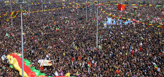 عشرات آلاف اللأكراد يحتفلون بعيد النوروز أمس في دياربكر. أ.ف.ب