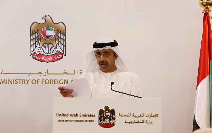 أكد سمو الشيخ عبدالله بن زايد آل نهيان، وزير الخارجية، أنه لا يمكن القبول بأي خطر استراتيجي على أمن دول الخليج، مشددا على وقوف ومساندة دولة الإمارات لجهود حماية الشرعية في اليمن، في ظل الأوضاع السياسية التي تمر بها حاليا.