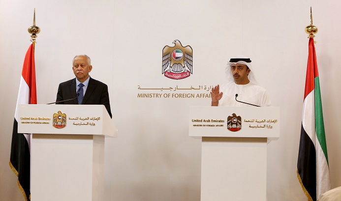 عبدالله بن زايد في مؤتمر مع نظيره اليمني: لا يمكن القبول بأي خطر استراتيجي يهدد أمن دول الخليج