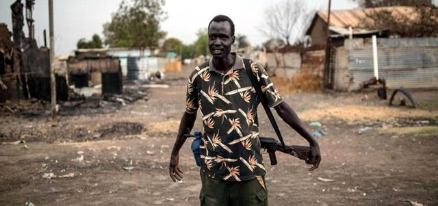 مقاتل من قوات رياك مشار يجوب شارعاً بمدينة ملكال. غيتي ـــ أرشيفية