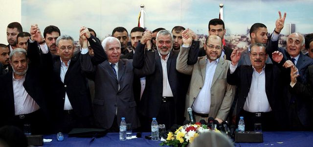 الفصائل الفلسطينية شكّلت حكومة الوفاق الوطني عقب اتفاق الشاطئ العام الماضي. الإمارات اليوم