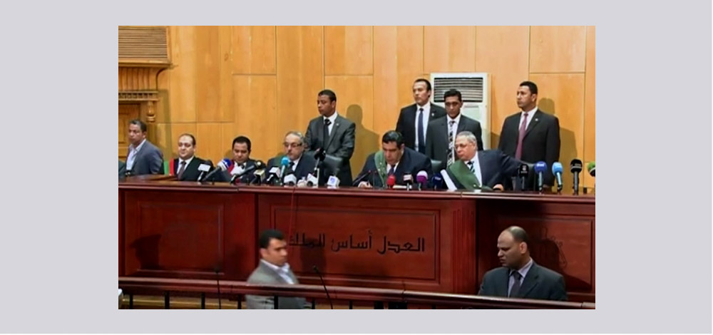 قضت محكمة جنايات القاهرة برئاسة المسشتار شعبان الشامي بالاعدام شنقا على كل من الرئيس المعزول محمد مرسي ومرشد الاخوان محمد بديع وقيادات الجماعة سعد الكتاتني ومحي حامد وعصام العريان ورشاد البيومي في قضية اقتحام السجون المصرية، والاعدام لاخرين غيابيا بينهم الداعية يوسف القرضاوي وصلاح عبد المقصود وزير الاعلام في عهد مرسي وفلسطينين من عناصر حماس .