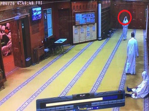 تداول رواد مواقع التواصل الاجتماعي صور وفيديو للحظة دخول الارهابي، الذي فجر نفسه داخل مسجد الإمام الصادق بالكويت وأودى بحياة أزيد من 15 قتيلا اليوم خلال صلاة الجمعة.