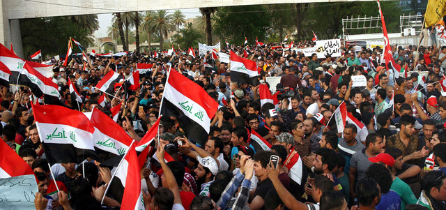تظاهرة ضد الفساد في ساحة التحرير وسط بغداد. أي.بي.إيه