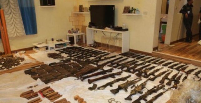 ويبين الفيديو الاسلحة والذخائر، ومواد متفجرة تم إخفاؤها في أحد المنازل في حفرة عميقة محصنة بالخرسانة.
