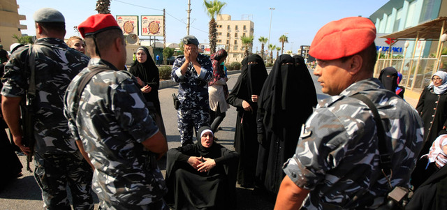عدد من أنصار الأسير يقفون بوجه قوات الأمن في صيدا. أ.ب