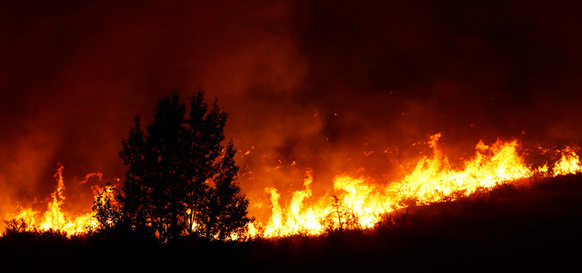 النيران امتدت إلى الطرقات في ظل عجز عن إطفائها. أ.ب
