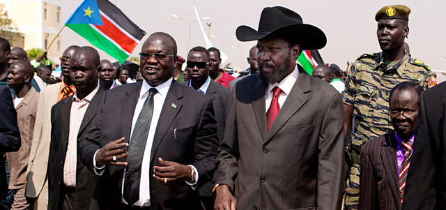 سلفا كير مع نائبه السابق رياك مشار. أرشيفية ــــ أ.ب