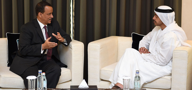 وفي بداية اللقاء، قدم المبعوث الأممي إلى اليمن التعازي إلى سمو الشيخ عبدالله بن زايد آل نهيان في شهداء الإمارات البواسل، المشاركين ضمن قوات التحالف العربي بقيادة السعودية في عملية «إعادة الأمل» في اليمن.