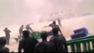 وتظهر اللقطات رجال الأمن بعد أن لاحظوا السيدة وهي تسير تحت الأمطار التي تزامنت مع سرعة شديدة للرياح ليهبوا لانقاذها على الفور.