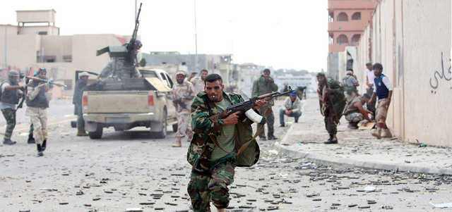 أصدر قائد الجيش الليبي في الحكومة المعترف بها دولياً، خليفة حفتر، أوامره لقادة المحاور بمدينة بنغازي، ببدء عملية حسم المعركة ضد الجماعات الإرهابية المتطرفة في المدينة، جاء ذلك في اجتماع عقده حفتر فجر أمس، مع قادة المحاور بمدينة بنغازي.