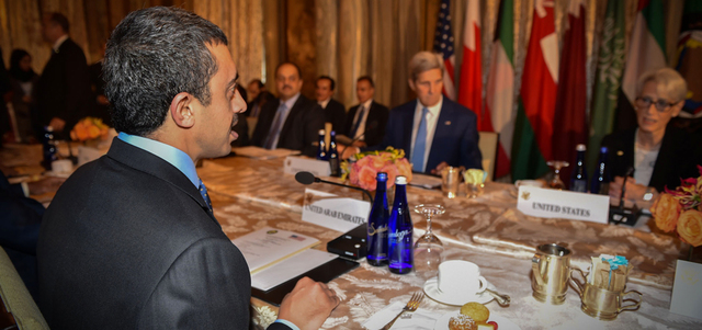 عبدالله بن زايد لدى مشاركته في الاجتماع الوزاري لدول التعاون والولايات المتحدة. وام