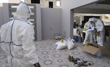 بعدد من القرى، تركزت وسط مناطق مأهولة بالسكان، ومنها ورشة لصناعة المتفجرات ومعمل لتحضير المواد المتفجرة ومواقع للتخزين"بحسب وكالة انباء البحرين(بنا).