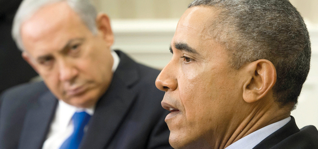 يأتي ذلك، في وقت أكد نتنياهو، أمس، التزامه بحل الدولتين مع الفلسطينيين ودعمه لتحقيق السلام في الشرق الأوسط، وذلك خلال اجتماع مع أوباما سعى خلاله الجانبان إلى تسوية الخلافات المتعلقة بإيران. وقال أوباما الذي استضاف نتنياهو في المكتب البيضاوي، إنه يتطلع لأن يسمع من رئيس الوزراء أفكاره بشأن كيفية الحد من العنف مع الفلسطينيين وكرر موقفه بأن إسرائيل لها الحق في الدفاع عن نفسها.