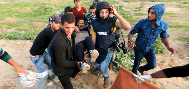 مصور فلسطيني أصيب بالمواجهات مع قوات الاحتلال في غزة. رويترز
