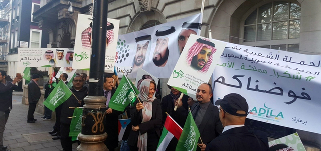 وقفة تضامنية للجالية اليمنية في لندن تأييداً للإمارات والسعودية