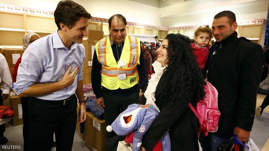 رئيس الوزراء الكندي يستقبل أول فوج للاجئين السوريين بمطار تورونتو