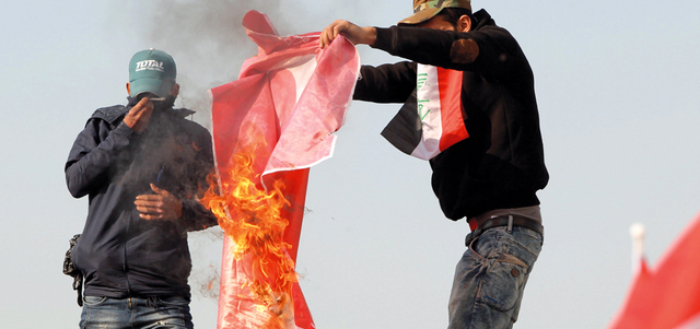 في السياق نفسه، تظاهر 3000 شخص، أمس، في ساحة التحرير وسط بغداد، احتجاجاً على التوغل العسكري التركي شمالي البلاد. وذكرت وكالة الأنباء العراقية أن عدداً من المتظاهرين قاموا بحرق العَلم التركي في الساحة. وتجمع عشرات المتظاهرين أمام مبنى السفارة التركية، في منطقة الوزيرية، وسط بغداد، مطالبين تركيا بسحب قواتها من نينوى فوراً. وكانت فصائل عديدة في مقدمتها عصائب أهل الحق دعت إلى الخروج في التظاهرة المنددة بالتوغل التركي.