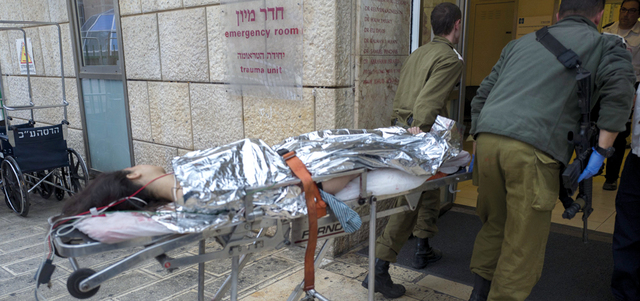 جنود الاحتلال يجرّون فلسطينية في حالة خطرة بعد إصابتها برصاص الاحتلال عقب محاولة طعن. إي.بي.إيه