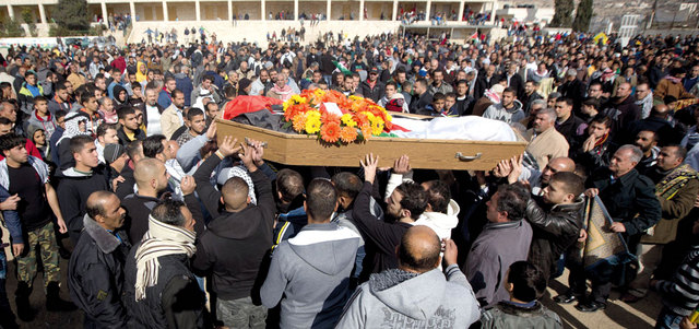 آلاف الفلسطينيين يشيعون الشهيدة مهدية حماد في قرية سلواد قرب رام الله. أ.ب