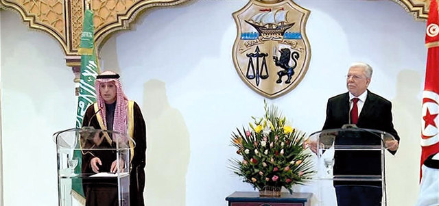 وزير الخارجية التونسي الطيب البكوش ونظيره السعودي عادل الجبير. أ.ف.ب