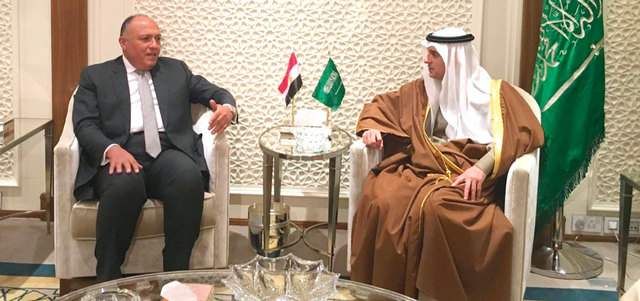 الجبير لدى اسقباله شكري في الرياض. واس