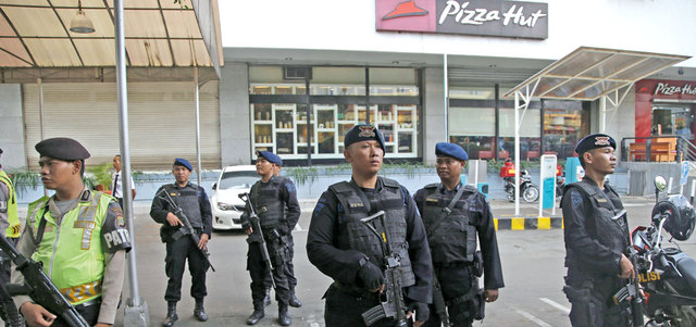 ضباط الشرطة ينتشرون خارج موقع هجوم جاكرتا. أ.ب