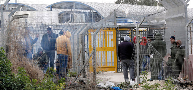 عمال فلسطينيون ينتظرون أمام حاجز ميتار جنوب الخليل. إي.بي.إيه