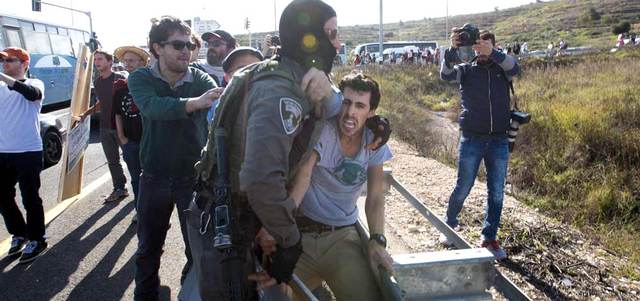 جانب من الاشتباكات بين شرطة الاحتلال وناشطين في الضفة. إي.بي.إيه