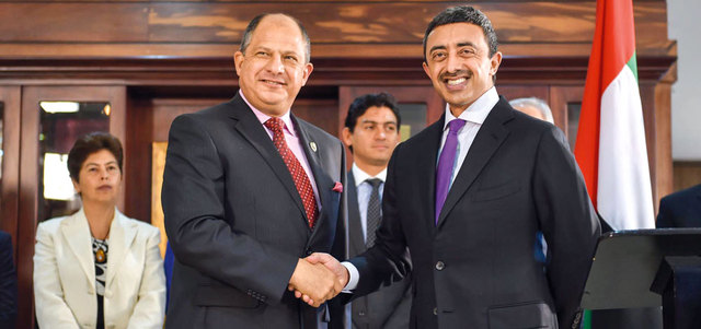 عبدالله بن زايد يبحث مع رئيس كوستاريكا تعزيز العلاقات
