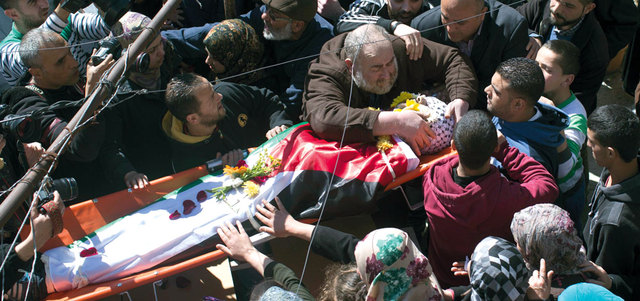 فلسطينيون يشيّعون الشهيد سجدية في مخيم قلنديا. إي.بي.إيه