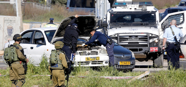شرطيان إسرائيليان يفتشان سيارة الشهيدة سباتين. إي.بي.إيه