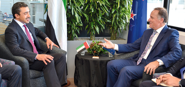 التقى سمو الشيخ عبدالله بن زايد آل نهيان، وزير الخارجية والتعاون الدولي، أمس، وزير الشؤون الخارجية النيوزيلندي، موراي ستيوارت ماكولاي، وترأسا أعمال الدورة الأولى للجنة المشتركة الإماراتية ــ النيوزيلندية، بحضور أعضاء اللجنة من البلدين.