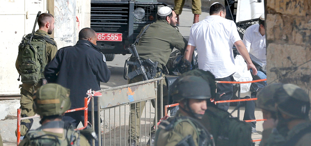 جنود الاحتلال ينقلون جثمان الشهيد العجلوني في الخليل. أي.بي.إيه