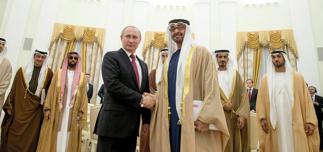 أكد صاحب السمو الشيخ محمد بن زايد آل نهيان، ولي عهد أبوظبي نائب القائد الأعلى للقوات المسلحة، أن لروسيا دور قوي ومهم في منطقة الشرق الأوسط، معرباً سموه عن أمله في «تطوير علاقاتنا بما يسهم في جعل المنطقة أكثر استقراراً وأماناً».