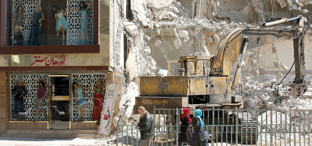 فلسطينيون يمرون أمام منزل مدمّر في غزة. رويترز