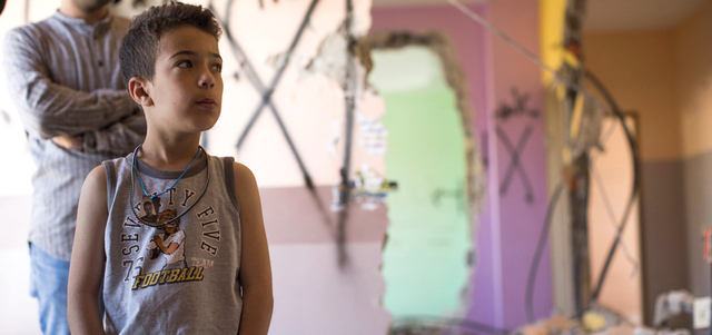 شقيق الشهيد أبوغوش يتفقد منزل عائلته بعد تدميره جزئياً. أي.بي.إيه