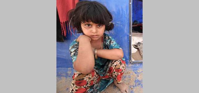 طفلة عراقية أمام خيمة للنازحين من مدينة الفلوجة. أ.ف.ب